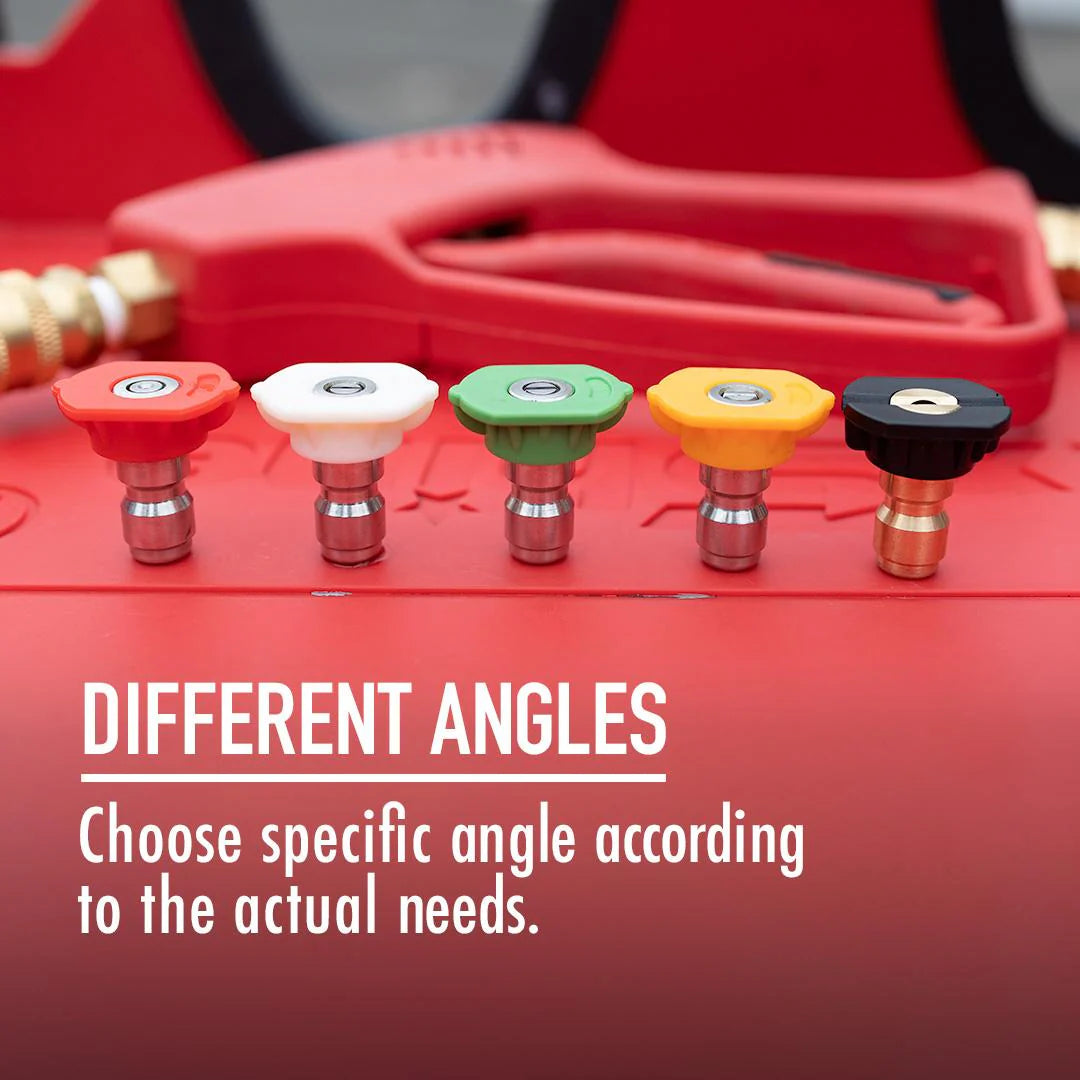 Choose different angles to spray the nozzle according to your needs with 0°, 15°, 25°, 40°, 65° Crafted from stainless steel for exceptional durability and professional-grade performance Precision-engineered for a perfect fit in your ¼-inch quick-release trigger, eliminating leaks and damage risks